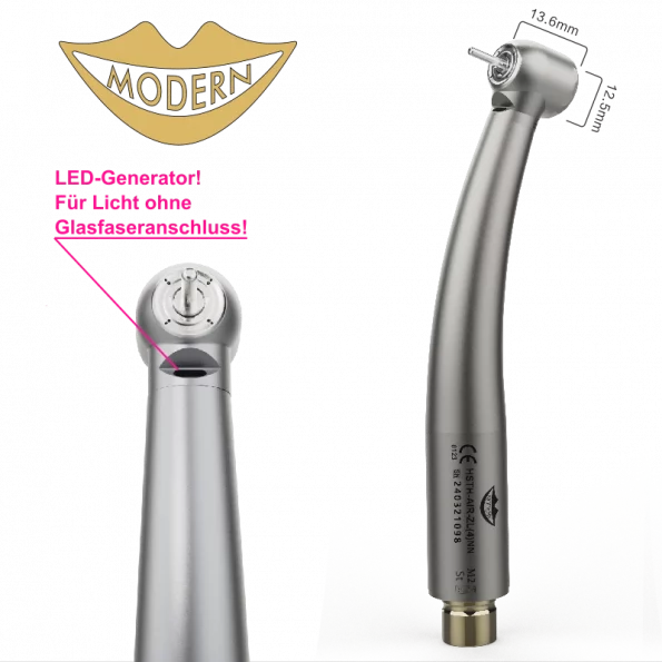NSK® kompatible Dental Turbine – MODERN M2 mit LED-Generator, Edelstahl