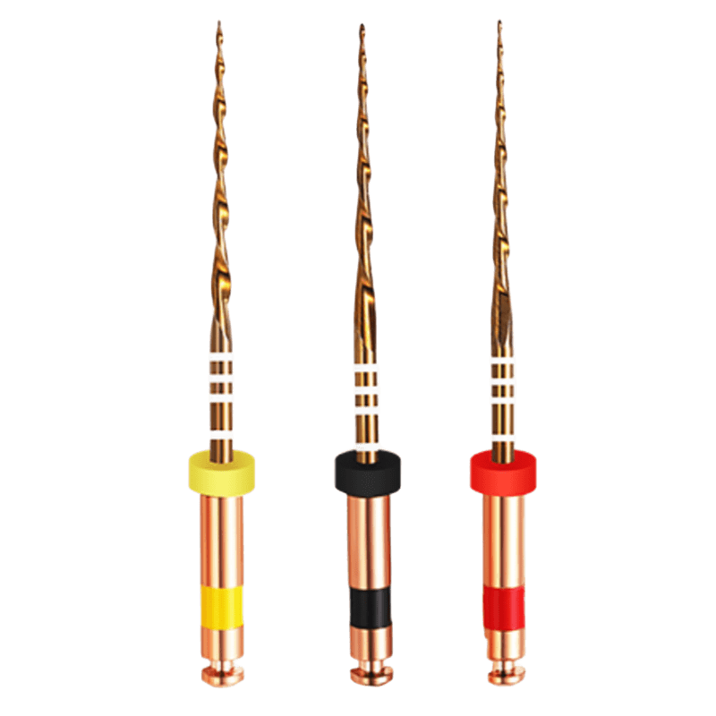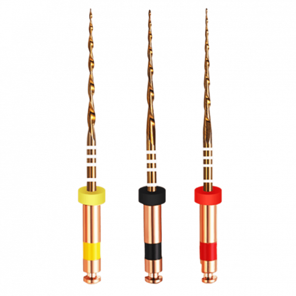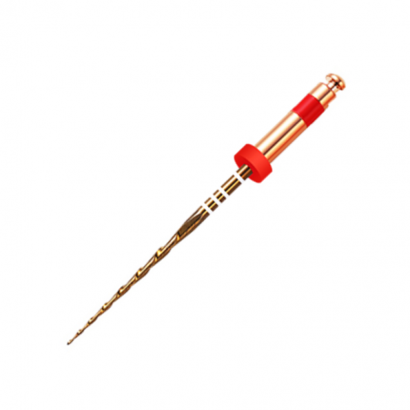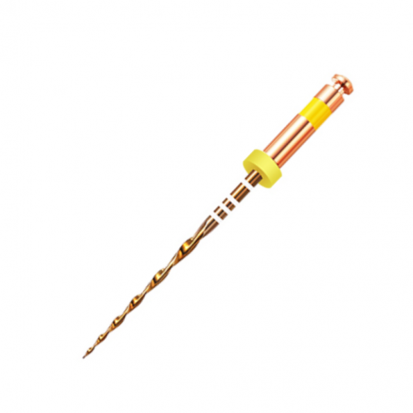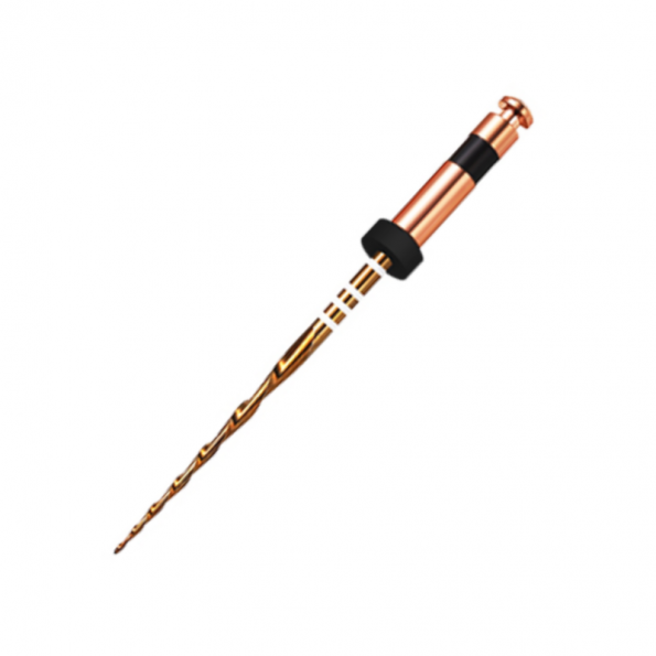 Optimierte Wurzelkanalaufbereitung, verbesserte Flexibilität und Bruchfestigkeit durch spezielle wärmebehandelte Nickel-Titan-Legierung. Erhöhte Sicherheit und Effizienz. Gleiche Eigenschaften wie das RC Feilensystem, aber mit Gold-Wärmebehandlung.