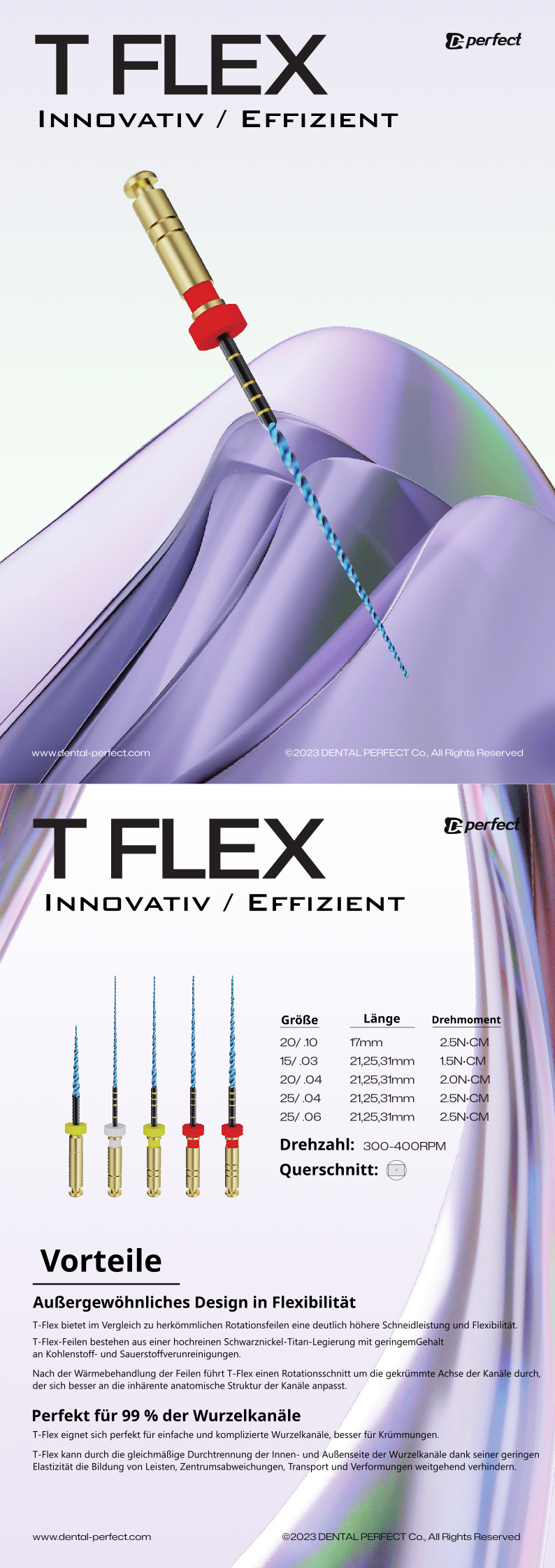 T-Flex sehr flexibele Wurzelkanalinstrumente / Wurzelkanalfeilen / Feilen / D-Perfect / NiTi / 5 Stück
